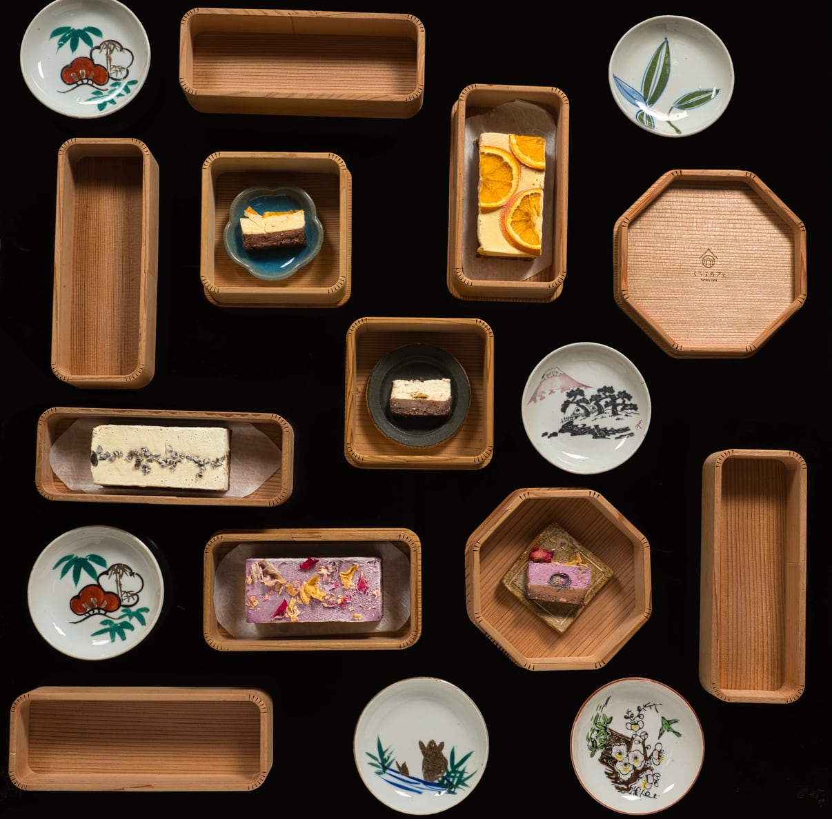 【箱屋常吉×くらるカフェコラボ商品】 2026お正月ローケーキ そらを思い、大地を思い、カラダを思ふ。 箱屋常吉の昔ながらの「土に還る生きた箱」に守られたカラダを思ふローケーキおせち。 藻から出来たスーパーフード「ブルースピルリナ」、ほうじ茶、自然農法のお抹茶、オーガニックストロベリーの4種類のローケーキが入ったロースイーツ。 新年の健康を願うカラダオモイなケーキ *デザインは異なる場合がございます。 「ローケーキ」とは… 48度以上の高温で加熱しないため、栄養や酵素を生のまま体内に取り入れることができると言われています。 乳製品、卵などは使用せず基本、植物性材料で作られます。小麦粉や白砂糖なども使わず身体にも負担がかかりません。 ヴィーガン、グルテンフリーや低糖質、ロカボにも対応可能です。 また、ナッツを使用するため驚きのビタミンやミネラル、食物繊維などの栄養素が詰まったカラダオモイスイーツです。 箱屋常吉の木箱に入れて発送いたします。 また、木箱の蓋には[思ふ-mofu-]だけのオリジナル瓢箪の焼印付。 木箱はお弁当箱としても長くお使い頂けます。 原材料 : カシューナッツ、オーガニック冷凍苺、冷凍フランボワーズ、オーガニックメープルシロップ、有機ココナッツオイル、カカオバター、デーツ、アーモンド、くるみ、有機ココナッツファイン、レモン汁、抹茶パウダー(自然農法)、ほうじ茶パウダー、カカオパウダー、オーガニックかぼちゃパウダー、レッドドラゴンフルーツピタヤパウダー、オーガニックバニラエクストラクト、ブルースピルリナ(DICスピルリナ)(藻類加工品)、金箔、塩 品数:4種類8個入り 消費期限:冷凍で1ヶ月、解凍後2日 (冷凍にてお届けします) [箱屋常吉] 明治元年(1868年)創業の「箱屋常吉」は、伝統の職人技とこだわりの杉材で料理木箱をはじめとする木製品を作り続けています。 木の持つ調湿効果と抗菌効果を活かした昔ながらの「おひつのようなお弁当箱」のほか、無垢・無塗装で土に還る自然素材にこだわった製品は使い込むほど味わいが増し、長くお使いいただけるものばかりです。手のぬくもりが感じられるお手あてのような木の優しい質感、切られてもなお呼吸している機能をお楽しみください。 発送までには10日頂きます。