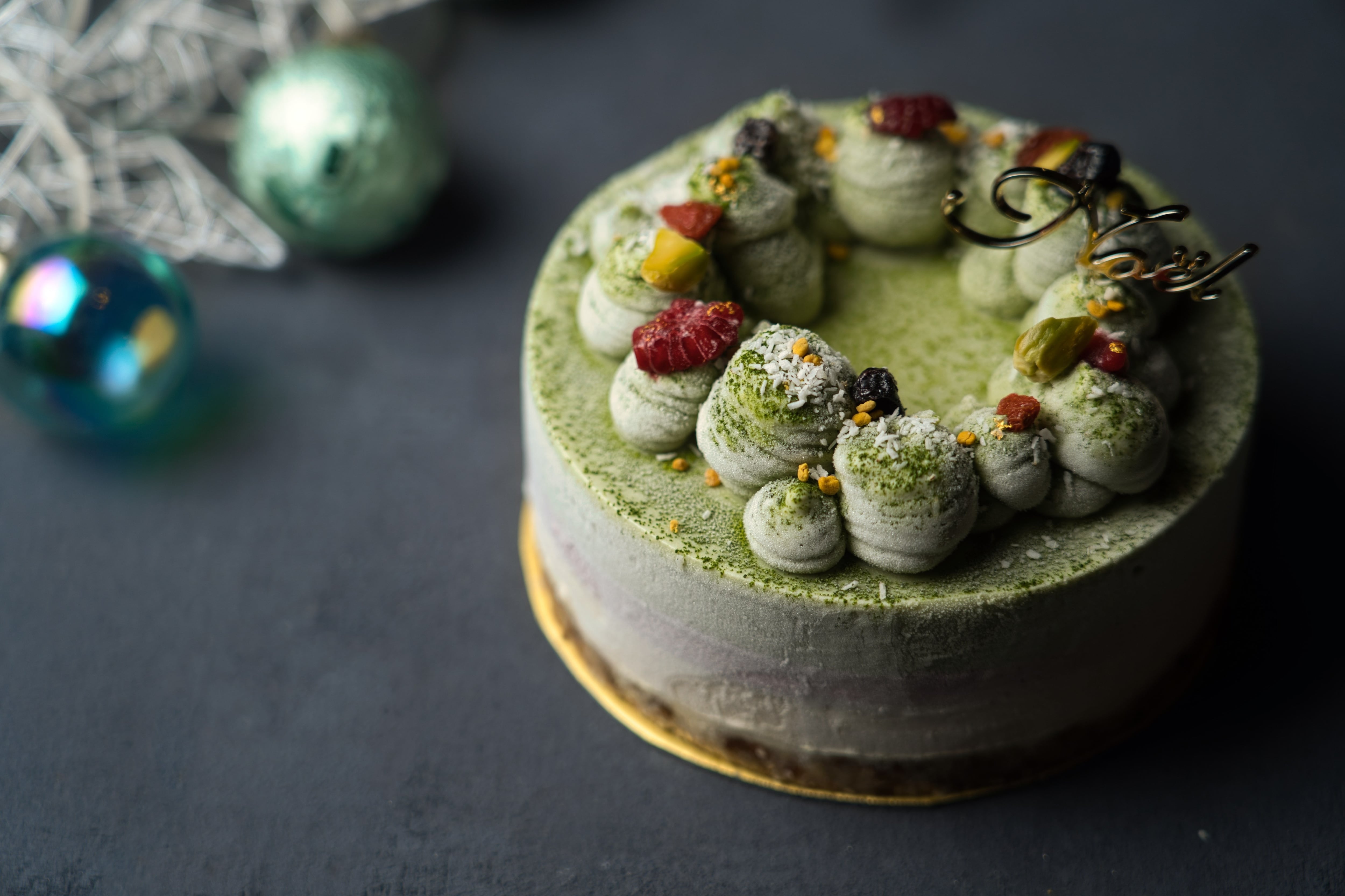 3層のクリームにお抹茶の香がマッチしたクリスマスケーキ。